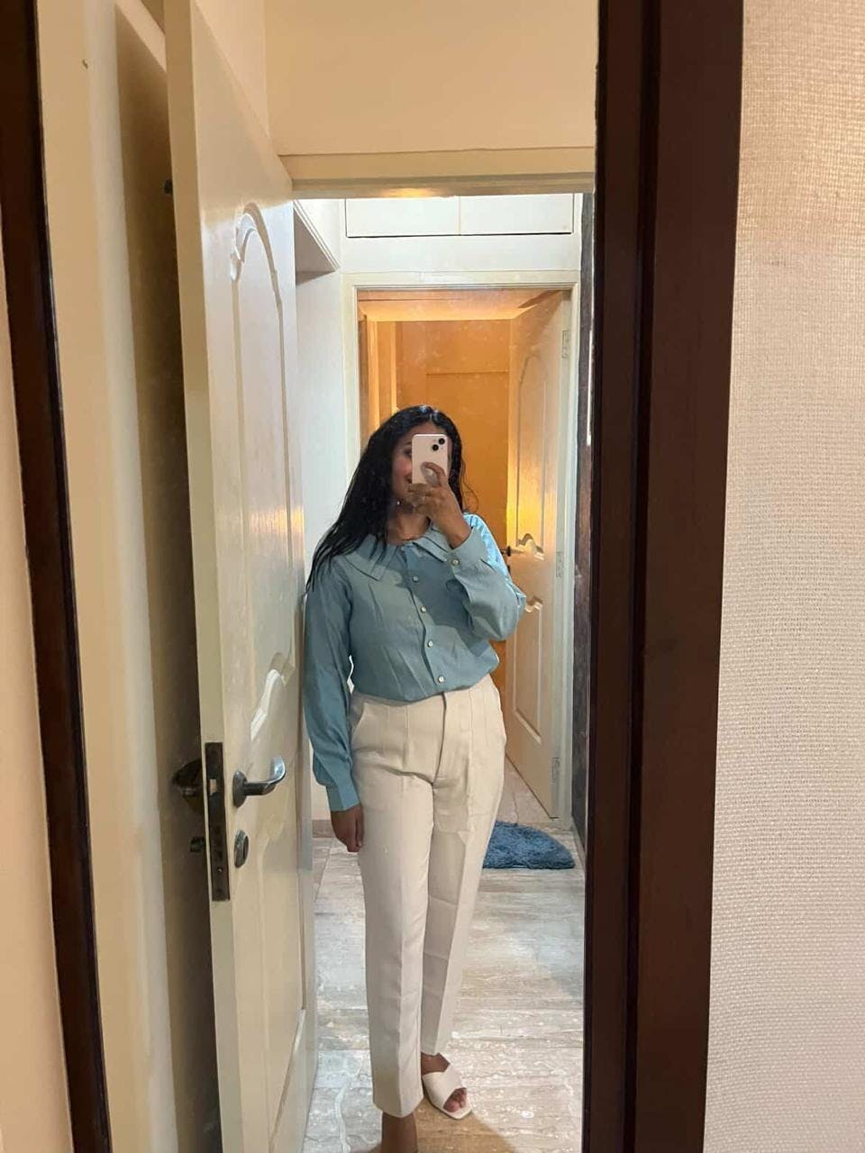 The shirt also pairs perfectly with floaty midi skirts for feminine brunch outfits, or works as a stylish layer, leave it open over a tank top or dress to showcase its designer collar and soft drape. Its dewy hue and standalone collar design make it a go-to piece for occasions from meetings to weekend gatherings, always lending a fresh, elevated edge to your wardrobe.