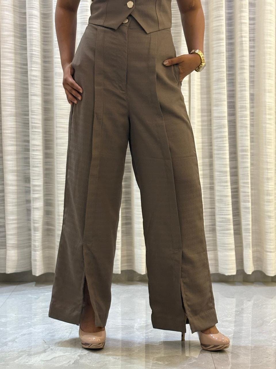 The Dessert Oak Pants redefine summer tailoring with their clean, high-waisted silhouette and fluid drape. Designed to elongate the legs, the trousers feature front pleats and subtle panel seams that create a sculpted yet relaxed shape. The straight-leg cut tapers gently, ending in a distinctive split hem that adds a contemporary edge to their timeless design. Structured yet breathable, these pants offer all-day comfort while maintaining an effortlessly polished appearance.