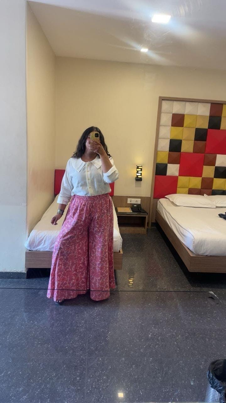 The shirt also pairs perfectly with floaty midi skirts for feminine brunch outfits, or works as a stylish layer—leave it open over a tank top or dress to showcase its designer collar and soft drape. Its ivory hue and standalone collar design make it a go-to piece for occasions from meetings to weekend gatherings, always lending a fresh, elevated edge to your wardrobe.