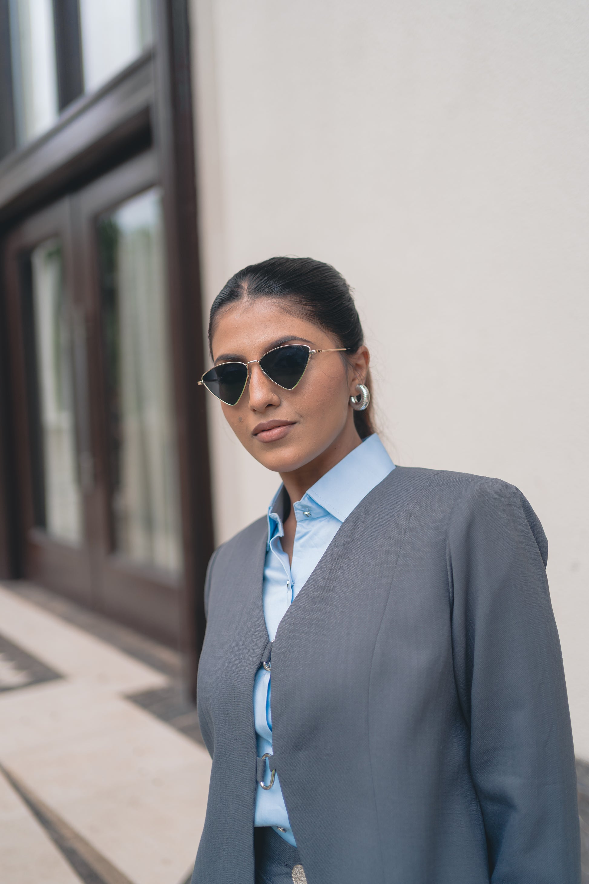 The Gunmetal Grey Cropped Jacket is a masterclass in structured subtlety. The perfectly balanced shade of grey makes it a versatile wardrobe essential — sophisticated enough for the office, understated enough for coffee dates, and chic enough for evening outings. Designed to flatter every body type from XS to 2XL, the cropped silhouette enhances your waistline while maintaining a sharp, modern edge. Extended sleeves with sculpted cuffs bring a tailored drama that commands quiet confidence.