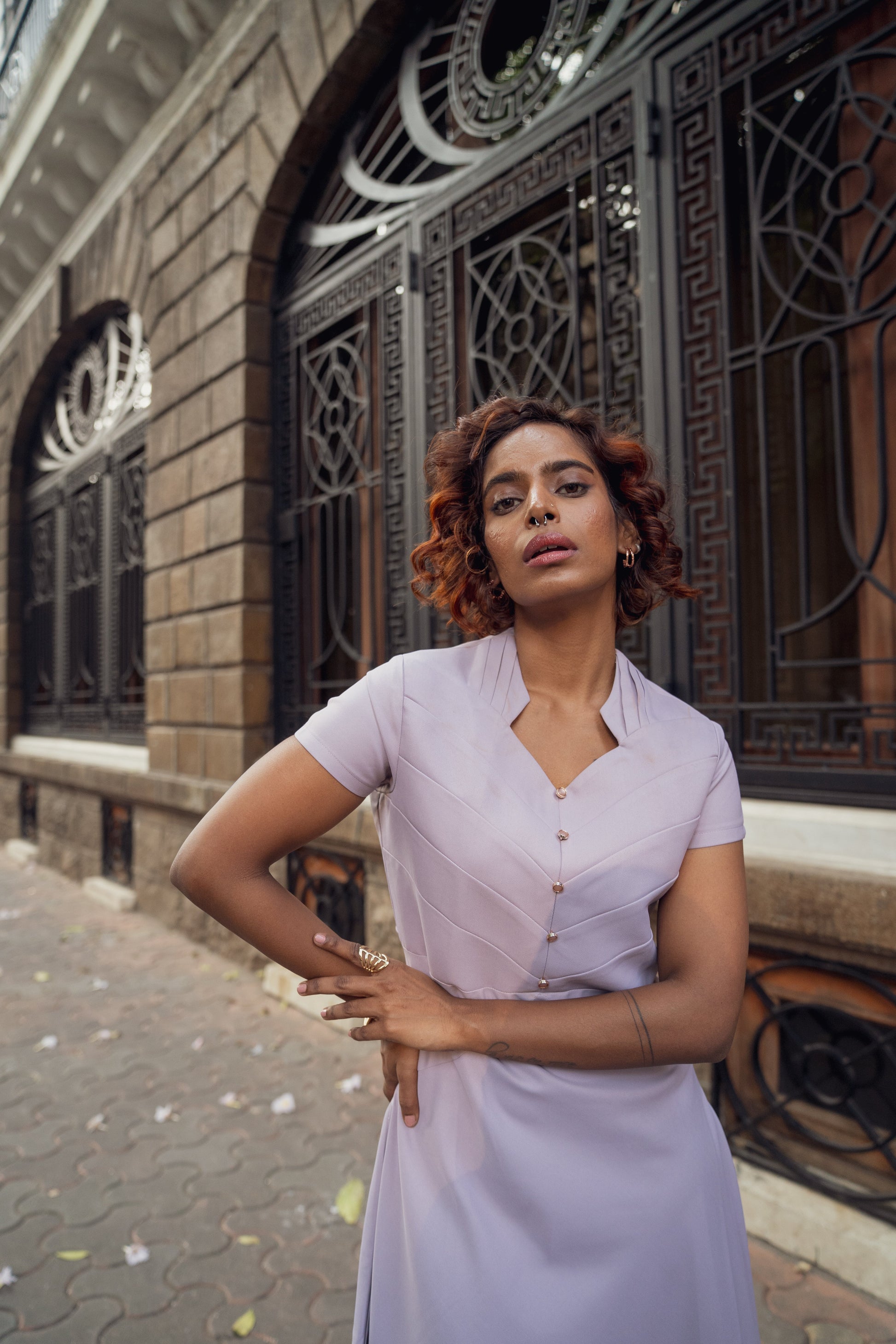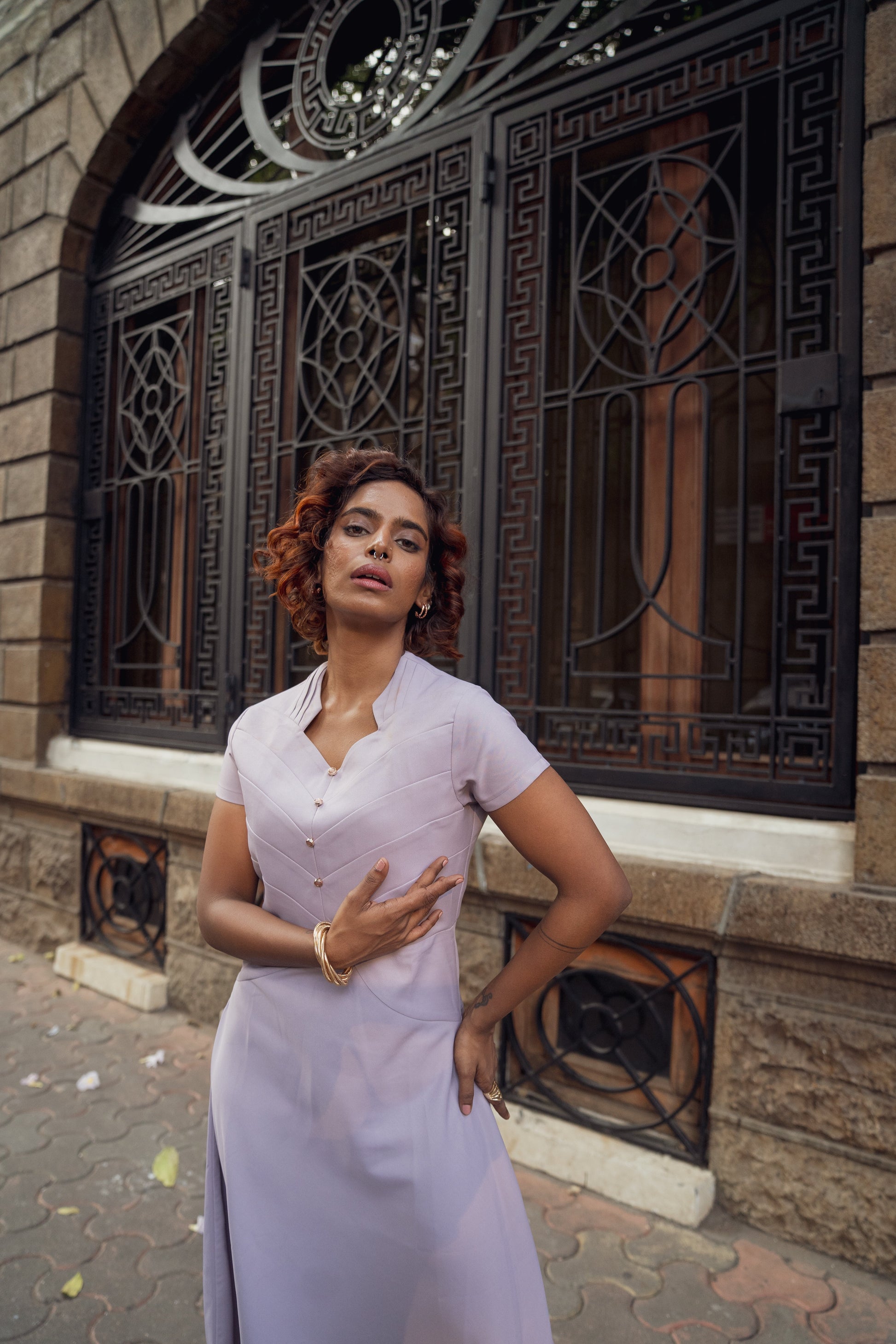 The Lavender Lilac Panel Detailed Dress showcases exceptional craftsmanship, with each panel meticulously stitched to create a seamless, flowing silhouette that highlights the hard work and attention to detail behind its construction. The flattering seams provide both structure and elegant movement, while small buttons at the front add a simple, refined accent that elevates the overall look.