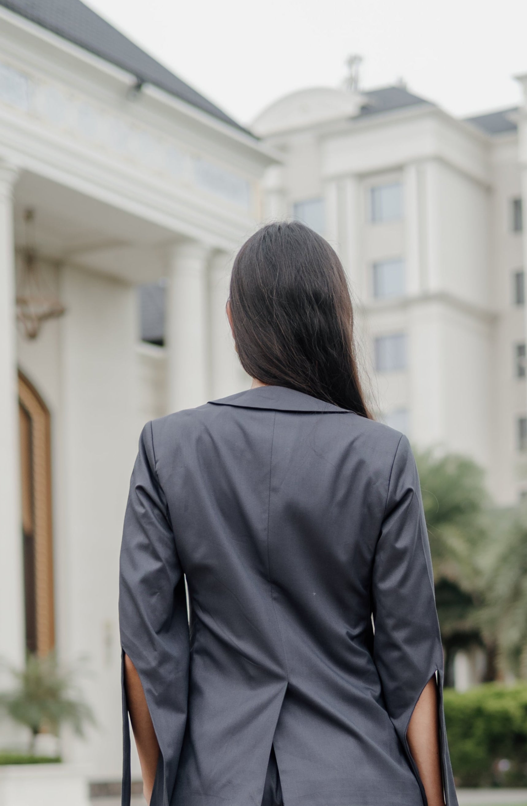 Designed with thoughtful detailing, the blazer features quintessential buttons and subtle sleeve cut-outs that add graceful movement and intrigue. Crafted from a luxurious cotton-viscose blend, it offers a soft texture, refined drape, and breathable comfort — ensuring structure without stiffness. Tailored to perfection, it’s a piece that embodies both poise and ease.