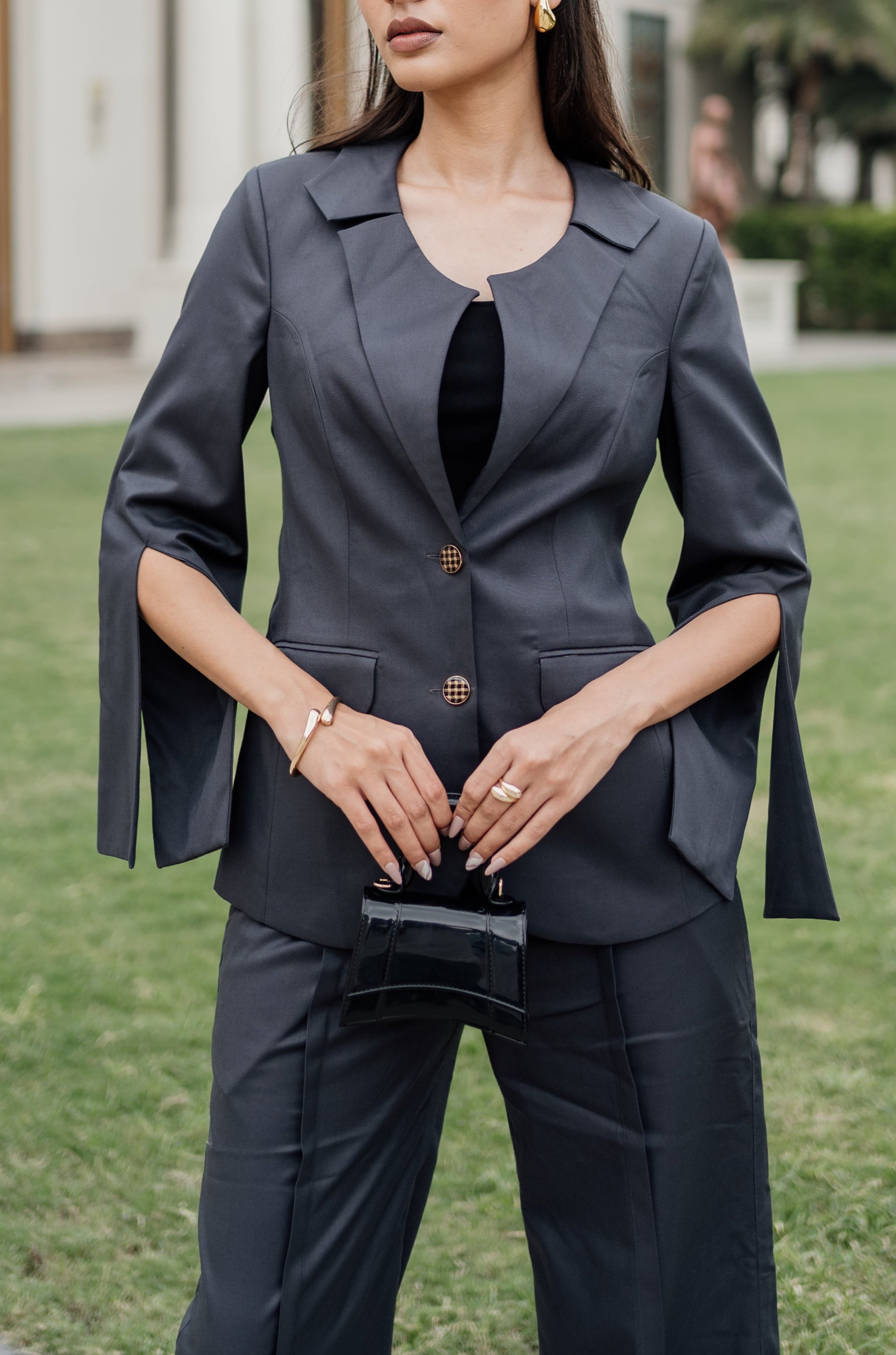 The Shadowstone Grey Trousers are tailored to flatter with refined precision. Designed with a straight-fitted silhouette, they elongate the frame and deliver structure without sacrificing comfort. The signature half-inch front pleat adds dimension and flow, while a discreet back cut ensures ease of movement and breathability throughout the day.